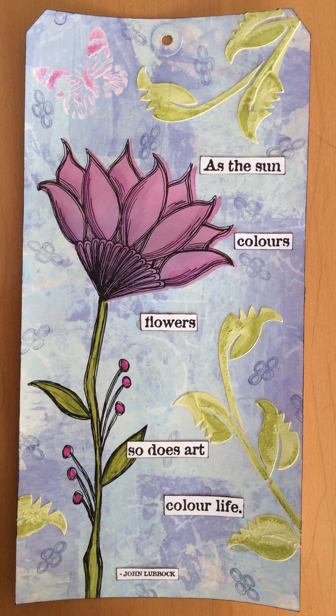 I stamped the quote out from ELB05, cut it out, edged with black and added to the tag.